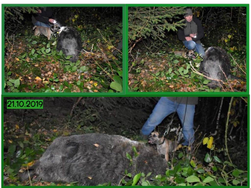 V pondělí večer nám volal kamarád, že by potřeboval Ronyho na dosled kusu černé zvěře. A náš psí parťák opět nezklamal a svou práci si odvedl na výbornou. Dosled byl dlouhý cca 150 m. Rony se po ověření nástřelu zapřel do řemene a vypracoval pobarvenou stopu spolehlivě a bez váhání. Prase bylo již zhaslé a mělo cca 110kg. Lovu, lesu a kynologii ZDAR !